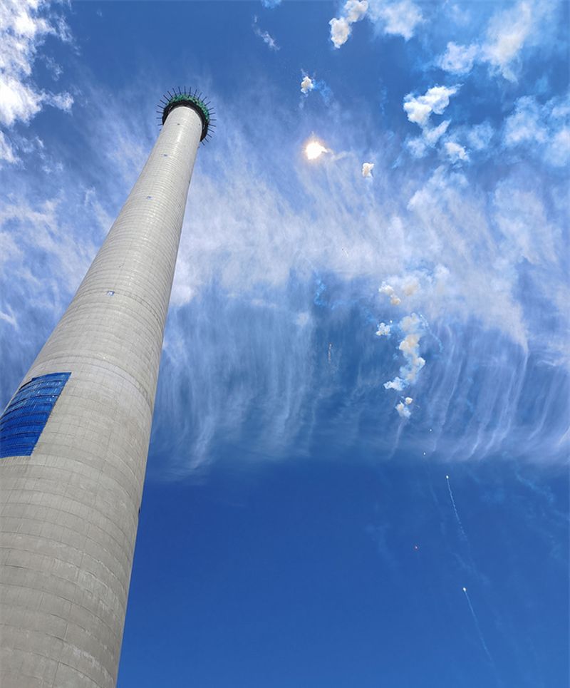 ?2021年 8月19日的清晨,初秋的內蒙已有些許涼意,但蒙泰東勝二期2*660MW熱電聯產項目3號煙囪改造及4號煙囪內筒鋼結構工程施工現場卻熱火朝天,一片大干的景象。